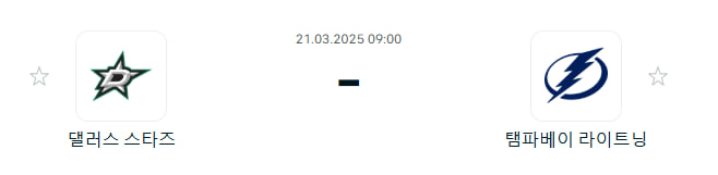 3월21일 NHL 미국하키 분석: 댈러스 스타즈 vs 템파베이 라이트닝