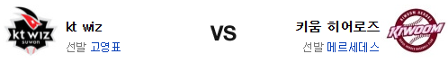 비록 전날 경기에서 승리를 거두긴 했지만 키움의 타선은 문승원 상대로 2점이라는, 조금은 아쉬운 결과를 남겼다. 페이스를 회복한 고영표 공략은 쉽지 않을듯. 게다가 메르세데스는 여름에 약한 문제를 여실히 드러내고 있고 키움의 불펜은 언제 무너져도 이상하지 않다. 선발에서 앞선 KT가 승리를 가져갈 것이다.