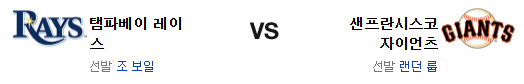 샌프란시스코 탬파베이 【 MLB 】분석 20250816