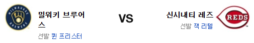 지금의 밀워키는 하이브리드 절대 무적의 팀이라고 해도 좋을 정도다. 7점차를 뒤집어버린 화력은 이번 경기에서도 기대를 걸게 하는 포인트. 게다가 리텔은 직전 경기의 부진도 있고 신시내티는 불펜의 안정감 부족도 있다. 프리스터의 직전 경기 투구는 아쉬웠지만 지금의 프리스터는 예전처럼 무조건 흔들리는 타입도 아니다. 전력에서 앞선 밀워키 브루어스가 승리를 가져갈 것이다.