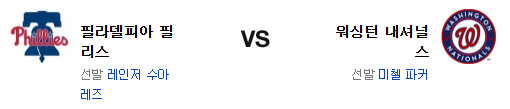 이번 시리즈에서 양 팀 모두 타격이 좋다고 할수 없다. 워싱턴은 그냥 나쁘고 필라델피아는 기복이 심한 편. 좌완 상대 타격을 고려한다면 파커가 오랜만에 잘해낼 가능성이 있지만 이는 놀라도 마찬가지고 불펜 대결로 가면 유리한건 필라델피아다. 전력에서 앞선 필라델피아 필리스가 신승을 가져갈 것이다.