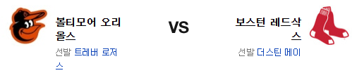 채프먼 없을 때의 보스턴은 그야말로 종이 호랑이였고 전날 경기는 그 여파가 나온 경기였다. 볼티모어의 타선이 살아나긴 했지만 이동이라는 변수가 있는 편. 하지만 메이는 아직 홈에서의 검증이 덜 된 반면 로저스는 현재 언터처블에 가까운 투수다. 불펜 변수가 있긴 하지만 이번엔 조금 다를 것이다. 선발에서 앞선 볼티모어 오리올스가 승리를 가져갈 것이다.