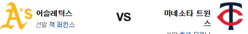 애슬레틱스의 기세가 무섭다. 그러나 전날 타격의 페이스가 떨어진게 문제가 될수 있는 부분. 미네소타 이적 이후 우레냐는 잃을게 없는 투수의 무서움을 보여주고 있고 퍼킨스는 원정 투구가 조금 더 나은 편이다. 이번 경기는 은근히 후반이 중요한 편인데 최근 불펜의 안정감은 애슬레틱스가 조금 더 낫고 결국 이 점이 승부를 가를 것이다. 후반에 강한 애슬레틱스가 신승을 가져갈 것이다.