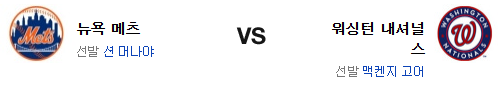또다시 센가가 무너졌다. 메츠로선 상당히 고민이 많아질듯. 게다가 직전 경기에서 타격 페이스가 떨어졌다는 점은 고어 상대로 고전할 가능성이 높다는 이야기이기도 하다. 반면 워싱턴의 타선은 전날 경기에서 어느 정도 살아나기도 했고 좌완 상대로 일명 한 방이 꽤 있는 편이다. 불펜 변수가 있지만 선발의 변수가 더 커 보인다. 선발에서 앞선 워싱턴 내셔널스가 신승을 가져갈 것이다.