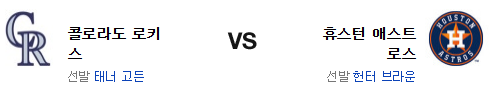 원정에서 휴스턴의 타선은 극과 극의 경기력을 보여주었다. 최근 홈에서 타격이 좋지 않다는 점은 가장 큰 고민거리일듯. 그러나 고든은 콜로라도 투수임에도 불구하고 홈보다 원정 투구가 훨씬 더 나쁜 투수고 브라운은 홈에서 에이스급 투구를 해잴수 있는 투수다. 그리고 불펜의 차이는 더 크다. 전력에서 앞선 휴스턴 애스트로스가 승리를 가져갈 것이다.
