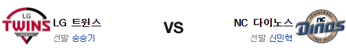 전날 경기에서 양 팀의 타격 페이스는 그야말로 크게 갈렸다. LG는 확실하게 타선이 힘을 낸 반면 NC는 치리노스의 투구에 철저하게 막혀버렸다. 손주영과 송승기의 피칭 디자인이 완전히 다르다는걸 고려한다면 송승기 공략은 쉽지 않을듯. 반면 신민혁은 최근 힘이 떨어져도 너무 떨어졌고 NC의 불펜은 신뢰가 어렵다. 전력에서 앞선 LG가 승리를 가져갈 것이다.