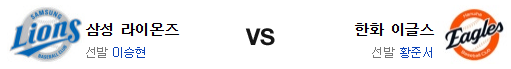 한화는 확실한 대승을 거둔 반면 삼성은 끝내기 패배를 당했다. 이 차이는 꽤 존재할듯. 황준서의 삼성전 투구를 고려하면 기대가 어렵고 이승현은 원정 강점이 어느 정도는 있는 투수다. 하지만 삼성의 불펜은 상당히 지쳐 있는 편인 반면 한화는 불펜이 좋은 편이고 결국 이 점이 승부를 가를 것이다. 투수력에서 앞선 한화가 승리를 가져갈 것이다.
