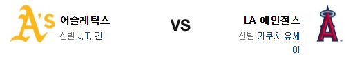 LA 에인절스는 키쿠치 유세이(6승 10패 3.83)가 시즌 7승 도전에 나선다. 2일 휴스턴 원정에서 5.2이닝 5실점의 부진으로 패배를 당한 키쿠치는 홈과 원정의 괴리가 엄청난 모습이 이어지는 중이다. 8월 16일 애슬레틱스 원정에서 4이닝 4실점 패배를 당했지만 최근 두 번의 홈 경기는 모두 6이닝 이상 1실점의 투구를 하는등 홈 방어율 2.30의 투수임을 잊어선 안된다. 전날 경기에서 바넷 상대로 1회말 올린 4점이 득점의 전부였던 에인절스의 타선은 2회부턴 아무것도 하지 못했다는 점이 아쉽다. 특히 원정에서 나오던 홈런포가 홈에서 나오지 않은게 컸다. 6.2이닝을 2실점으로 버틴 불펜은 우레냐의 5이닝 2안타 무실점이 컸다.