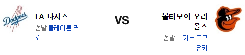 다저스의 타선 부진이 심각하다. 스가노 상대로 과연 타선이 터져줄지는 두고 봐야 할듯. 커쇼가 인터리그에서 강하긴 하지만 볼티모어의 좌완 공략 역시 좋기 때문에 선발 대결 역시 막상막하의 가능성은 꽤 높아 보인다. 결국 이번에도 불펜전인데 이번 시리즈 한정으로 불펜의 우위는 볼티모어가 가지고 있고 이 점이 결국 승부를 가를 것이다. 불펜에서 앞선 볼티모어 오리올스가 신승을 가져갈 것이다.