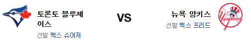 힐 상대로의 부진. 토론토의 타격감이 급격하게 가라앉았다. 좌완 상대로 강한 팀이긴 하지만 살아난 프리드를 공략하는건 쉽지 않을듯. 물론 서져의 투구 내용은 분명 기대를 걸 여지가 많은 편이긴 하지만 로테이션 상으로 1일의 이동차가 있고 결국 이 점이 승부를 가를 것이다. 선발에서 앞선 뉴욕 양키스가 승리를 가져갈 것이다.