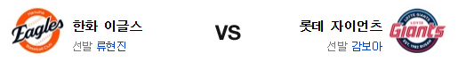 전날 경기는 현재 한화라는 팀이 얼마나 잘 나가는 팀인지를 보여주었다고 해도 과언이 아니다. 일단 타격과 불펜은 확실하게 한화가 우위에 있는 편. 롯데가 믿는건 푹 쉬고 온 감보아인데 문제는 이쪽은 푹 쉬고 온 류현진이라는 것이고 이는 불꽃 튀는 선발 투수전으로 이어질수 있다. 그리고 감보아가 내려가는 순간 롯데의 좋은 시간은 끝이다. 전력에서 앞선 한화가 승리를 가져갈 것이다.
