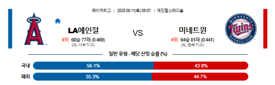 【MLB메이저리그】09월11일 LA에인절스 vs 미네소타 mlb 생중계,스포츠분석,스포츠중계