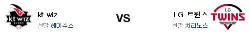 잠실 라이벌전을 멋진 역전 승리로 장식했다. LG로선 이보다 더 좋을수 없는 상황. 치리노스의 투구는 날씨가 시원해지면서 다시금 좋을때의 모습으로 돌아오고 있고 KT 상대로 강점도 있다. 물론 최근 헤이수스의 투구는 충분히 주목할 가치가 있지만 전날 LG는 두산의 좌완 투수 라인을 가차없이 공략해 냈고 이 점이 결국 승부를 가를 것이다. 전력에서 앞선 LG가 승리를 가져갈 것이다.