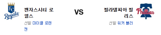 필라델피아의 화력이 무섭다. 메츠 상대로 강력한 모습을 보여준 타격은 캔자스시티 상대로 충분히 그 위력을 발휘할수 있을듯. 특히 로렌젠이 원정에서 약하다는 점이 이번 경기의 키 포인터다. 물론 뷸러의 투구는 과연 기대를 가져야 하는지 조금 의문이 있긴 하나 오버올의 차이가 크다. 전력에서 앞선 필라델피아 필리스가 승리를 가져갈 것이다.