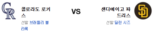 샌디에고의 타선이 수상하다. 그러나 블레이락만큼은 공략할수 있다고 봐야 할듯. 물론 전날 콜로라도 타선이 승리의 디딤동를 만들긴 했지만 문제는 그게 다 홈런이었다는 점이고 홈 경기의 시즈는 충분히 호투가 가능하다는 점이다. 그리고 여전히 샌디에고의 불펜은 강력하다. 선발에서 앞선 샌디에고 파드레스가 승리를 가져갈 것이다.