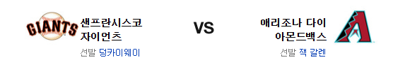 샌프란시스코의 가을 야구가 위험해졌다. 특히 타선의 부진이 아프게 느껴지는 포인트. 이전에야 갤런 상대로 홈에서 홈런으로 승부를 봤지만 홈 경기의 갤런은 공략이 쉽지 않은 편. 거기에 원정의 텡은 기대가 더 어렵다. 힘에서 앞선 애리조나 다이아몬드백스가 승리를 가져갈 것이다.