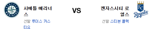 시애틀의 연승이 막을 내렸다. 이번 경기는 상당히 팽팽할듯. 콜렉의 투구가 좋긴 하지만 시애틀 타선은 이번 시리즈에서 캔자스시티의 선발 투수들을 잘 공략하고 있다. 카스티요의 투구 역시 원정 기대는 어려운 편. 결국 화력전인데 화력전으로 가면 유리한건 시애틀이다. 힘에서 앞선 시애틀 매리너스가 승리를 가져갈 것이다.