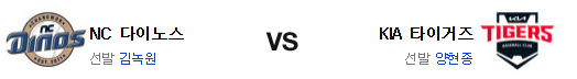 전날 NC의 패배는 그야말로 자멸이라는 표현이 어울릴 정도였다. 최근의 타격을 고려한다면 솔직히 이번 경기에서 양현종 상대로 살아나긴 쉽지 않을듯. 물론 최근 KIA의 타격과 팀 분위기가 엉망이라는건 야구팬이라면 다 아는 사실이긴 하지만 김녹원은 원정에서 기대를 하면 안되는 투수고 NC의 불펜은 KIA보다 더 망가져 있다. 선발에서 앞선 KIA가 승리를 가져갈 것이다.