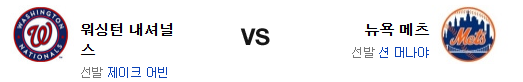 전날 경기는 메츠의 방심이 불러온 패배라고 해도 할 말이 없을 정도다. 이번 경기에서 반등할수 있느냐가 관건이 될듯. 머나야의 투구는 홈에서 슬슬 반등할수 있고 워싱턴의 타선은 좌완 상대로 상당히 좋지 않은 편이다. 어빈이 어떤 투구를 해주느냐가 관건이지만 후반기의 어빈은 AAAA급 투수다. 선발에서 앞선 뉴욕 메츠가 승리를 가져갈 것이다.
