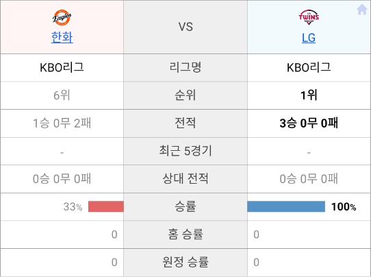 • 예상 스코어: LG 7 : 한화 3