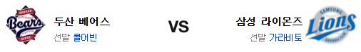 삼성의 타선은 원정에서 가라앉았지만 홈에선 다른 모습을 보여줄수 있다. 게다가 어빈이 라이온즈 파크에서 겪은 악몽과 최근의 투구를 고려한다면 이번에도 고전은 확정 레벨. 물론 전날 두산이 앤더슨을 공략해내는 개가를 올리긴 했지만 가라비토는 이야기가 다르다. 선발에서 앞선 삼성이 승리를 가져갈 것이다.