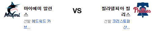 최근의 마이애미는 그야말로 신나게 고춧가루를 뿌려대는 중이다. 하지만 유독 같은 지구 팀 상대로는 문제를 보이는 중. 거기에 산체스는 홈 경기 투구가 좋고 약팀 상대로는 그야말로 저승사자에 가깝다. 물론 카브레라의 투구는 기대의 여지가 있지만 원래 원정 투구가 좋지 않은 편이고 무엇보다 재활 투구 없이 등판한게 걸린다. 선발에서 앞선 필라델피아 필리스가 승리를 가져갈 것이다.