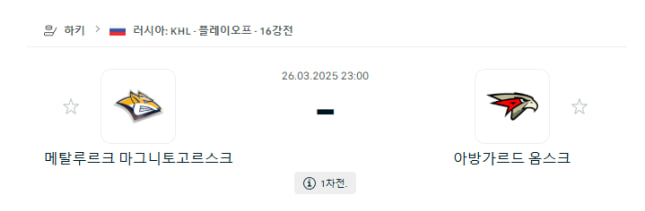 3월26일 KHL 23:00 메탈루르크 마그니토고르스크 vs 아방가르드 옴스크 아이스하키분석