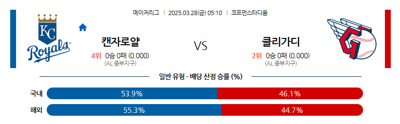 03월 28일 MLB 캔자스시티 클리블랜드 MLB분석