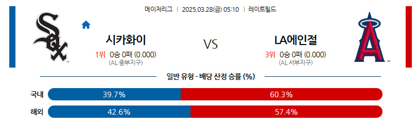 03월 28일 MLB 시카고W LA에인절스 MLB분석