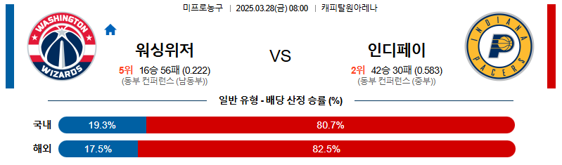 # 홈팀 : 워싱턴 위저즈(16승56패)