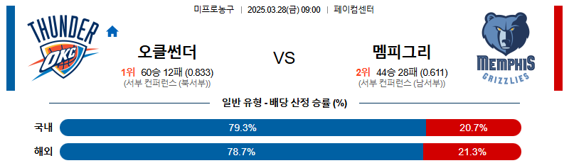【NBA 프로농구】 03월 28일 오클라호마 vs 멤피스