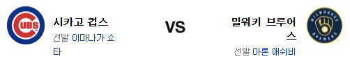 시카고 컵스는 이마나가 쇼타(4.50)를 내세워 반격에 나선다. 샌디에고와 와일드카드전에서 4이닝 3안타 2실점의 부진한 투구를 보여준 이마나가는 첫 가을 야구의 투구 내용 자체는 상당히 좋지 않은 편이다. 특히 밀워키 상대로 홈에선 강해도 원정에선 좋지 않다는 점은 이번 경기에서 약점이 되기에 충분하다. 1차전에서 페랄타와 쾨니그 상대로 솔로 홈런 3개로 3점을 올린 컵스의 타선은 가을 야구의 득점력 부족이 계속 나오고 있는 중. 딱 6안타에 그친 타선은 중심 타선의 부진이 아쉽다. 7.1이닝동안 3실점을 허용한 불펜은 막판 6이닝을 잘 버텼다는데 의의를 두어야 할것 같다.