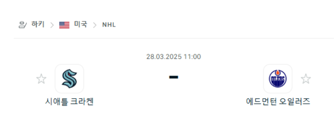 [NHL] 3월28일 11:00 NHL 시애틀 크라켄 vs 에드먼턴 오일러즈 아이스하키분석