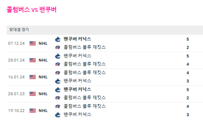 밴쿠버는 콜럼버스와의 역대 전적에서 우위를 점하고 있습니다(21승 12패).
