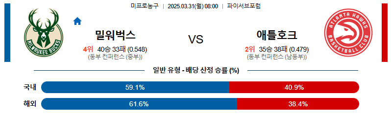 【NBA 프로농구】 03월 31일 밀워키 vs 애틀랜타