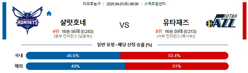 【NBA 프로농구】 04월 01일 샬럿 vs 유타