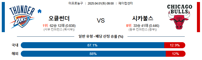 # 홈팀 : 오클라호마(62승12패)