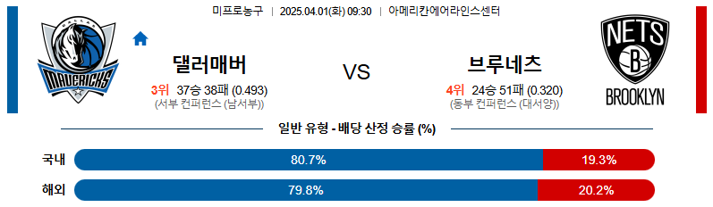 # 홈팀 : 댈러스 매버릭스(37승38패)