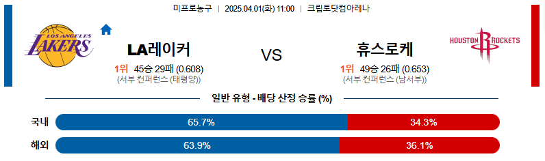 # 홈팀 : LA레이커스(45승29패)