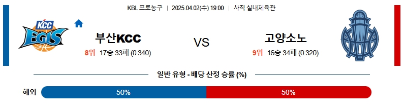 # 홈팀 : 부산 KCC 이지스(17승33패, 8위)