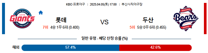 04월 5일 KBO 롯데 : 두산 KBO분석