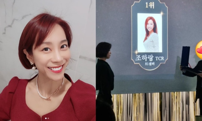 사진에서 조민아는 무대 위에 올라 누군가로부터 상을 받고 있으며 화면에는 1위 표시도 돼 있었다.