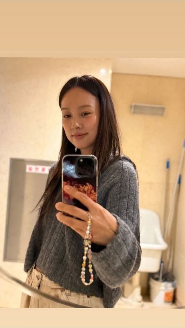 특히 촬영 장소는 다름 아닌 공중화장실로 보이는 공간. 평범한 장소에서조차 자연스럽고 여유 넘치는 포즈를 보여주며, 이효리만의 '자유로운 아우라'를 발산했다. 휴대폰 케이스와 알록달록한 스트랩도 그녀 특유의 힙한 감각을 드러낸다.