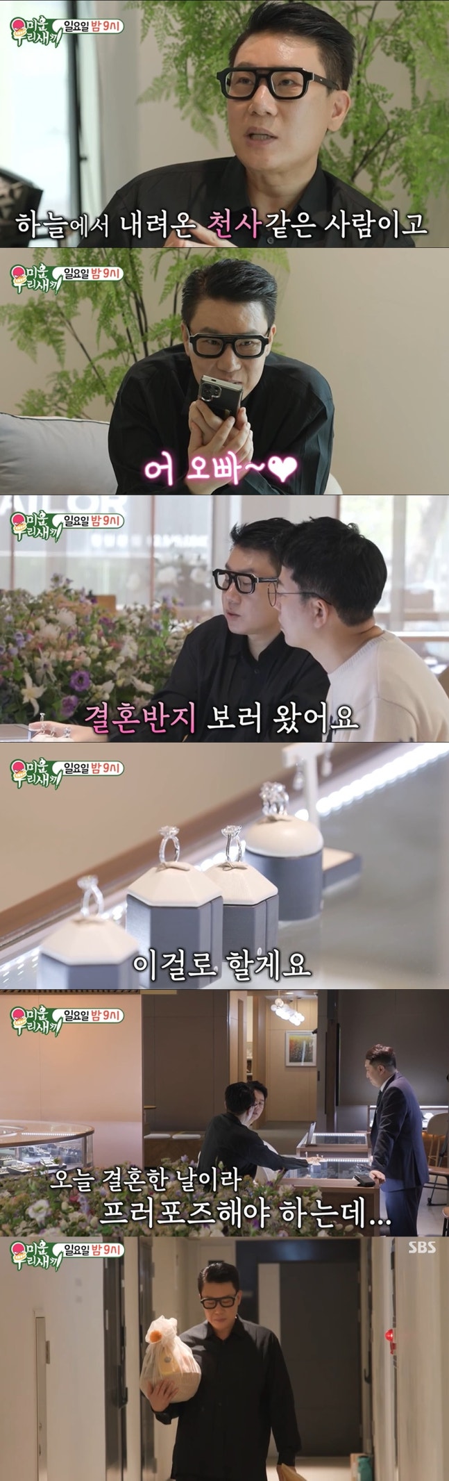 이상민이 속전속결로 혼인신고서를 접수하는 모습과 함께 결혼반지를 고르러 나서는 장면도 그려졌다. 그는 "아내 스타일"이라며 다이아반지를 선택했고, "오늘 결혼한 날이라 프러포즈 해야 되는데. 혼인신고서랑 같이 반지랑 해서"라고 말해 설렘을 더했다.