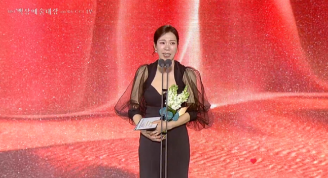 이어 그는 "훌륭한 여자 조연 배우들이 정말 많다. 김용림, 나문희 선생님이 큰 기둥으로 서 계셨고, 하늘나라로 간 강명주 선배님, 존경하는 선후배님 많이 만났다. 나이 떠나서 훌륭한 어린 배우들, 깊은 존경과 감사 보낸다"라고 조연상의 가치를 언급했다.