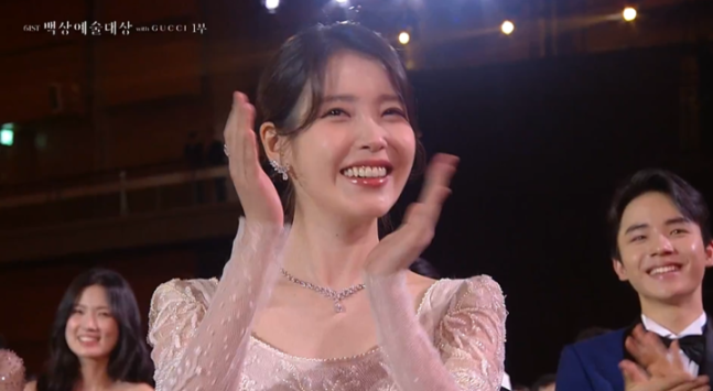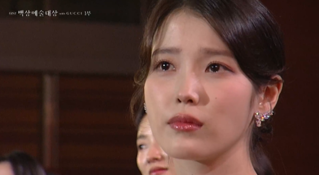 그러면서 그는 울컥한 모습을 보였고, 이를 지켜보던 객석의 아이유 또한 눈물을 글썽였다.