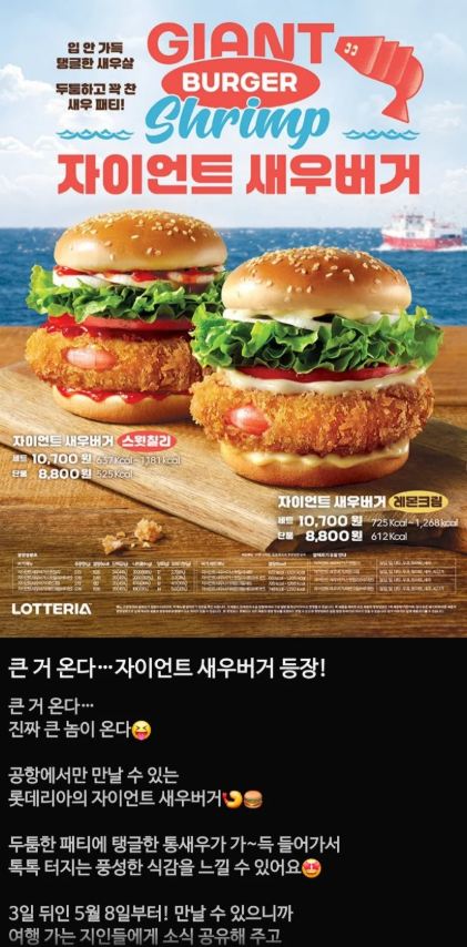 새우버거 먹으려고 비행기 한번 타야 하는 건가 싶다.