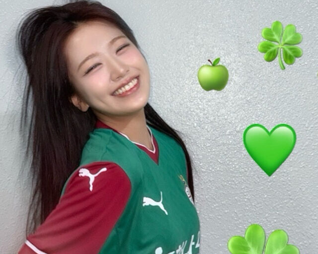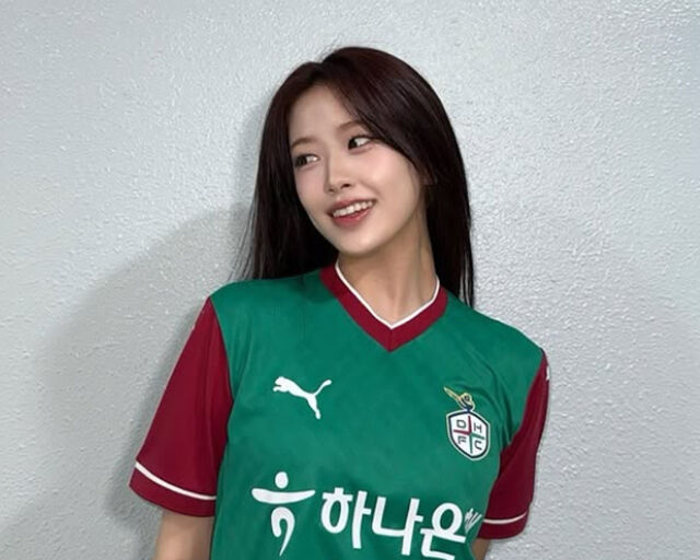 지난 3일 대전월드컵경기장에서 열린 2025시즌 K리그1 대전하나시티즌 경기에서 안유진이 시축 자로 참석했다. 대전 출신인 안유진은 2023년에도 대전 홈경기 시축에 나섰고 이날 두 번째 시축으로 경기장을 찾은 것이다.
