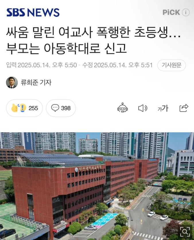 싸움 말린 교사 폭행한 초등생... 교사를 신고한 학부모