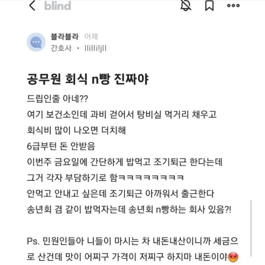 공금 같은 건 전혀 지원되지 않는 걸까? 회식비나 식대, 식사 관련 예산조차 없는 건가?